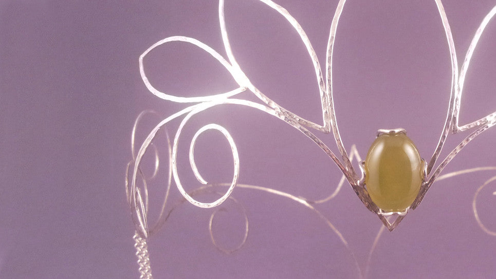 I work primarily with silver, the brighest of the metals. When the sun sets in November, I feel compeled to create my own light. My pieces sparkle, but not with the fire of gems. Rather with a cold, white light in common with the snow piling up outside my window.