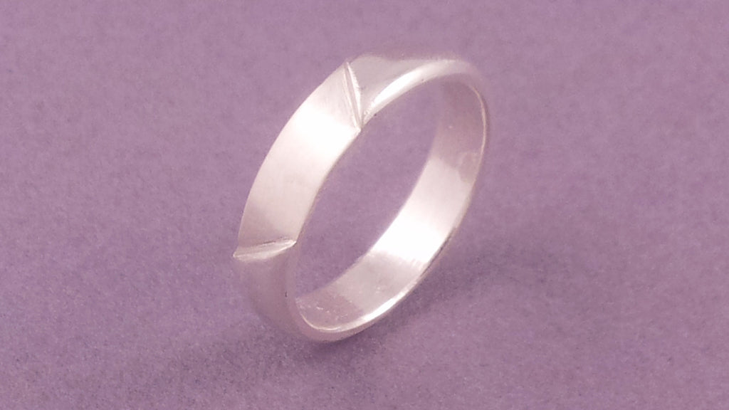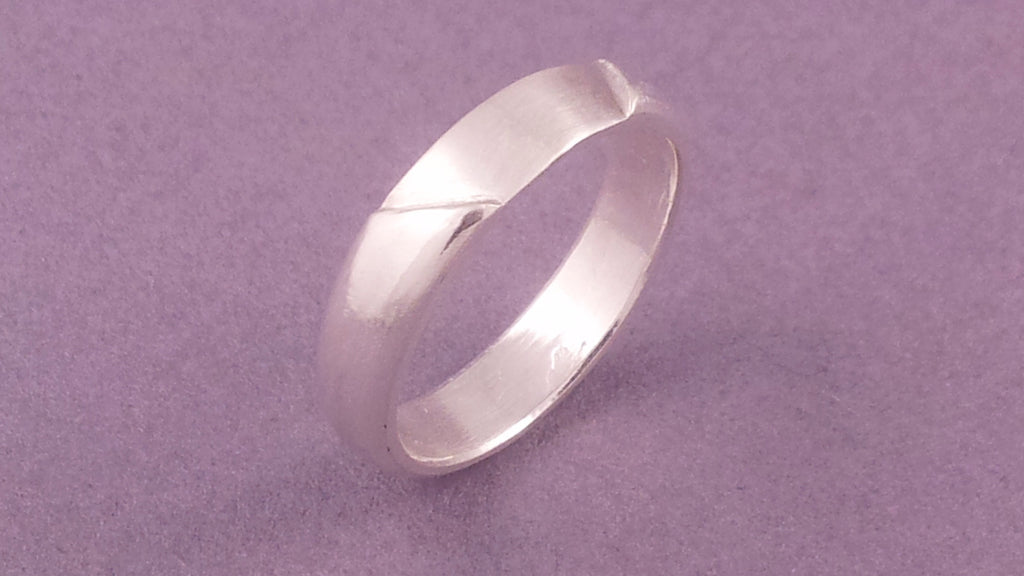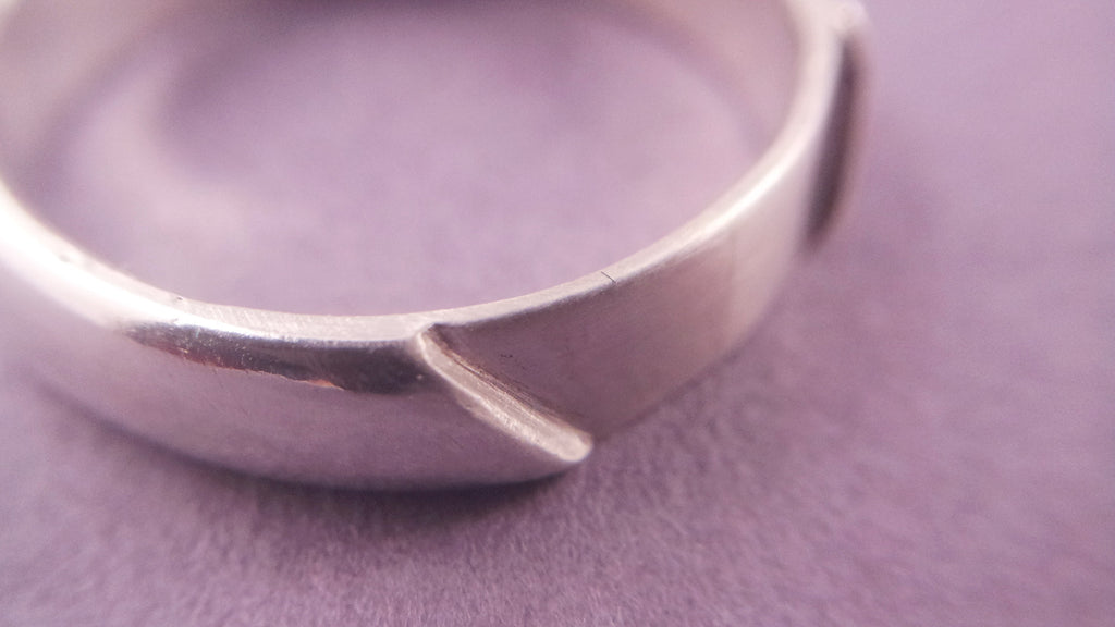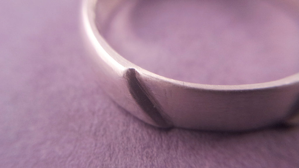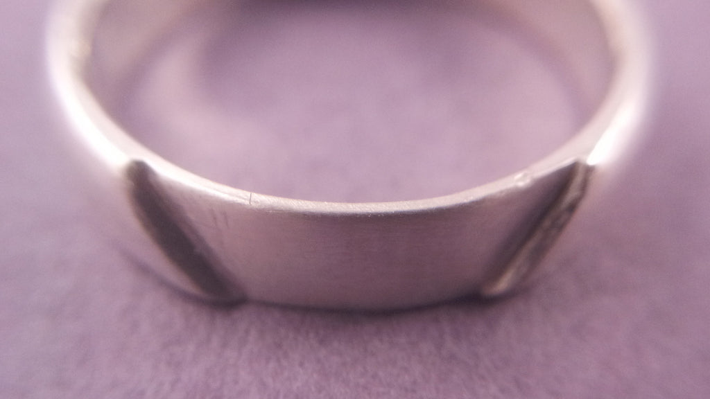 The piece is hand made with a wide deep matte finish ray of light in the middle of the shining circumference. I designed and produced the First Light for my little brother.