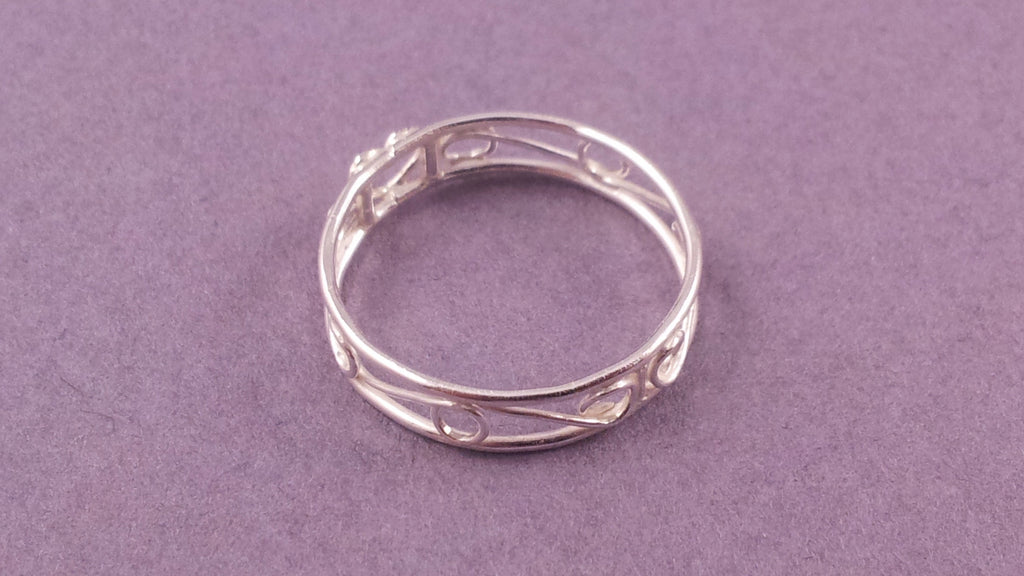 The piece is hand made with a small heart shaped curve in the middle of the swirling circumference. I designed and produced the First Mist for the betrothed of my little brother.